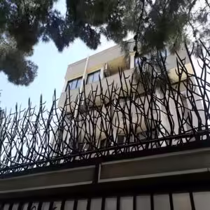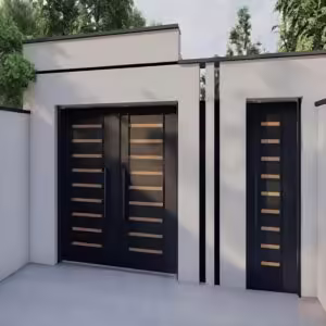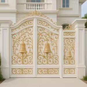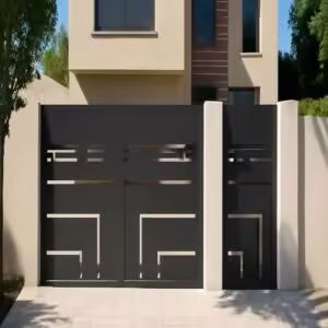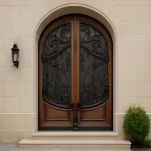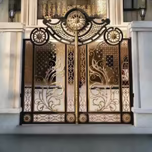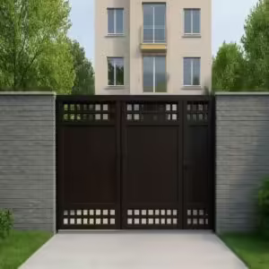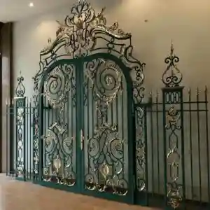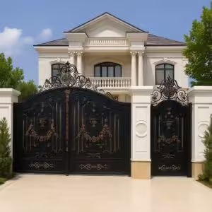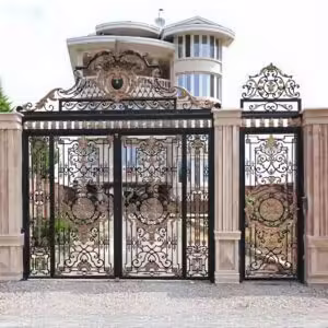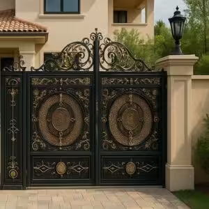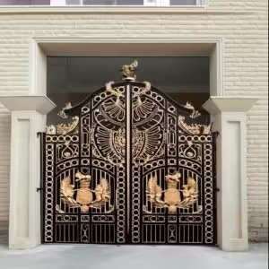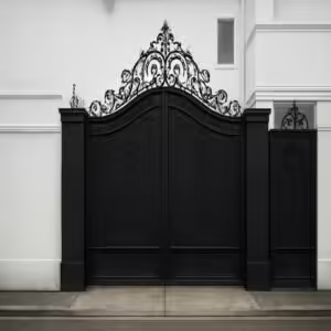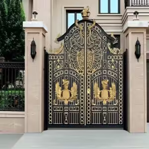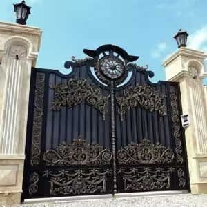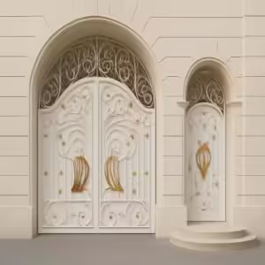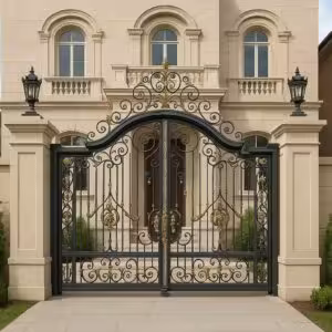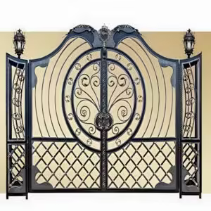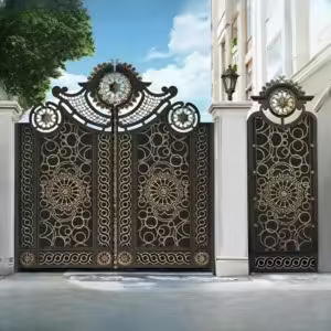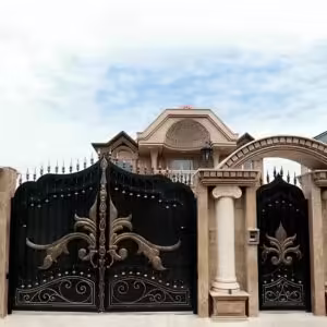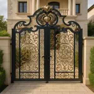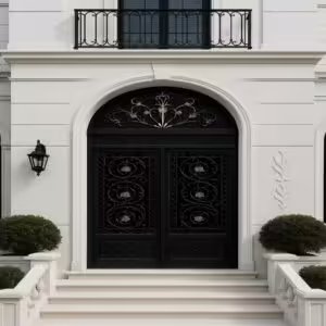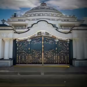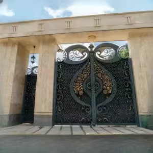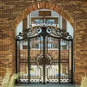 درب حیاط فرفورژه لوکس در طراحی ورودی ساختمان